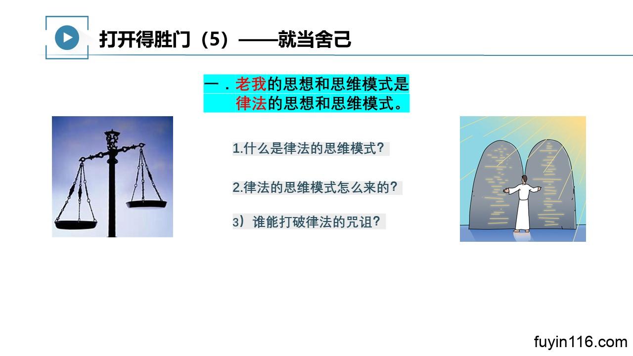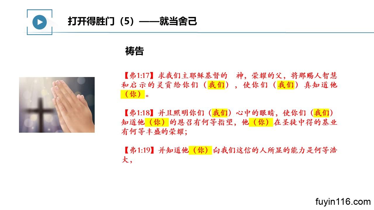 在6月11日的主日,由倩文师母继续《打开得胜门》系列的分享,第05讲:
