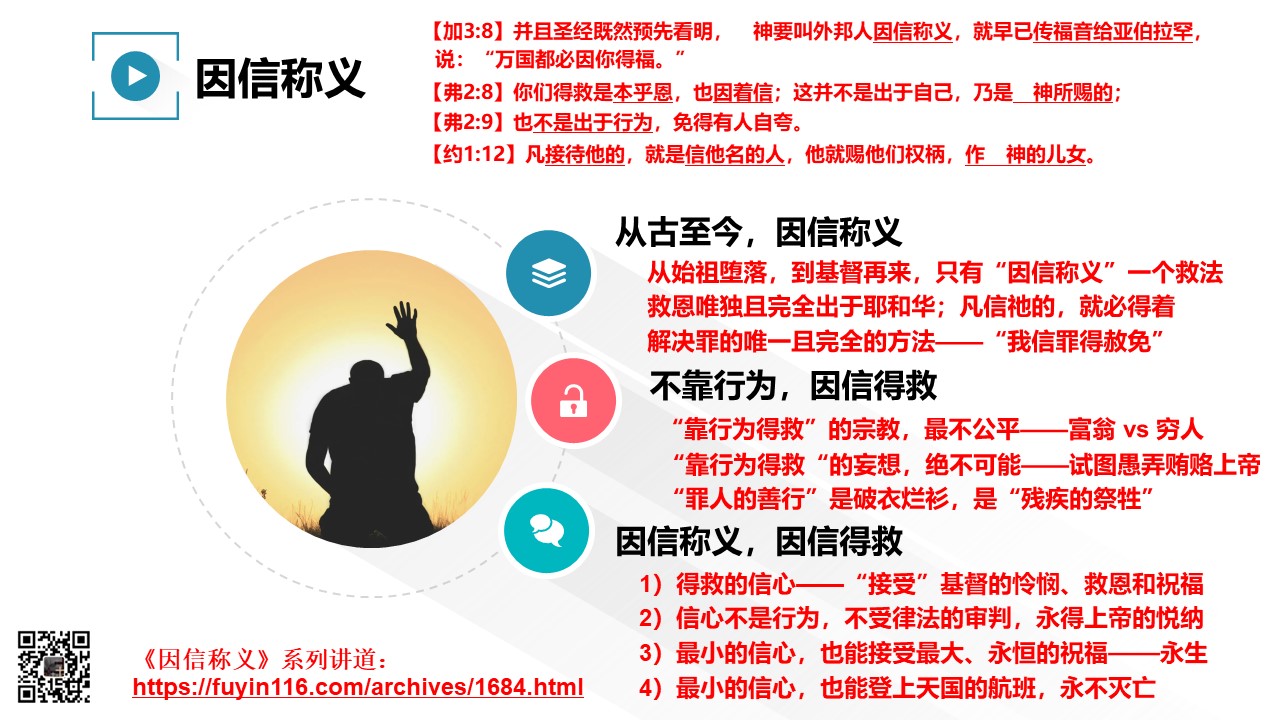 也强烈建议大家花时间听我们的《因信称义》系列讲道,必能让你茅塞顿开,充满力量和信心,去广传福音: