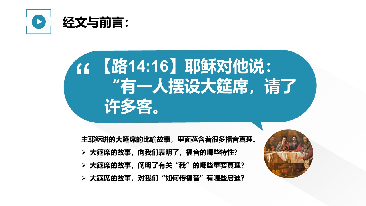 主耶稣讲的大筵席的比喻故事,里面蕴含着很多福音真理。