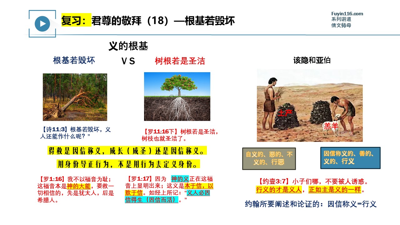 视频整理完成,我们就会把讲道视频共享出来,在此之前,可以观看上一讲《君尊的敬拜(18)根基若毁坏》的讲道视频: