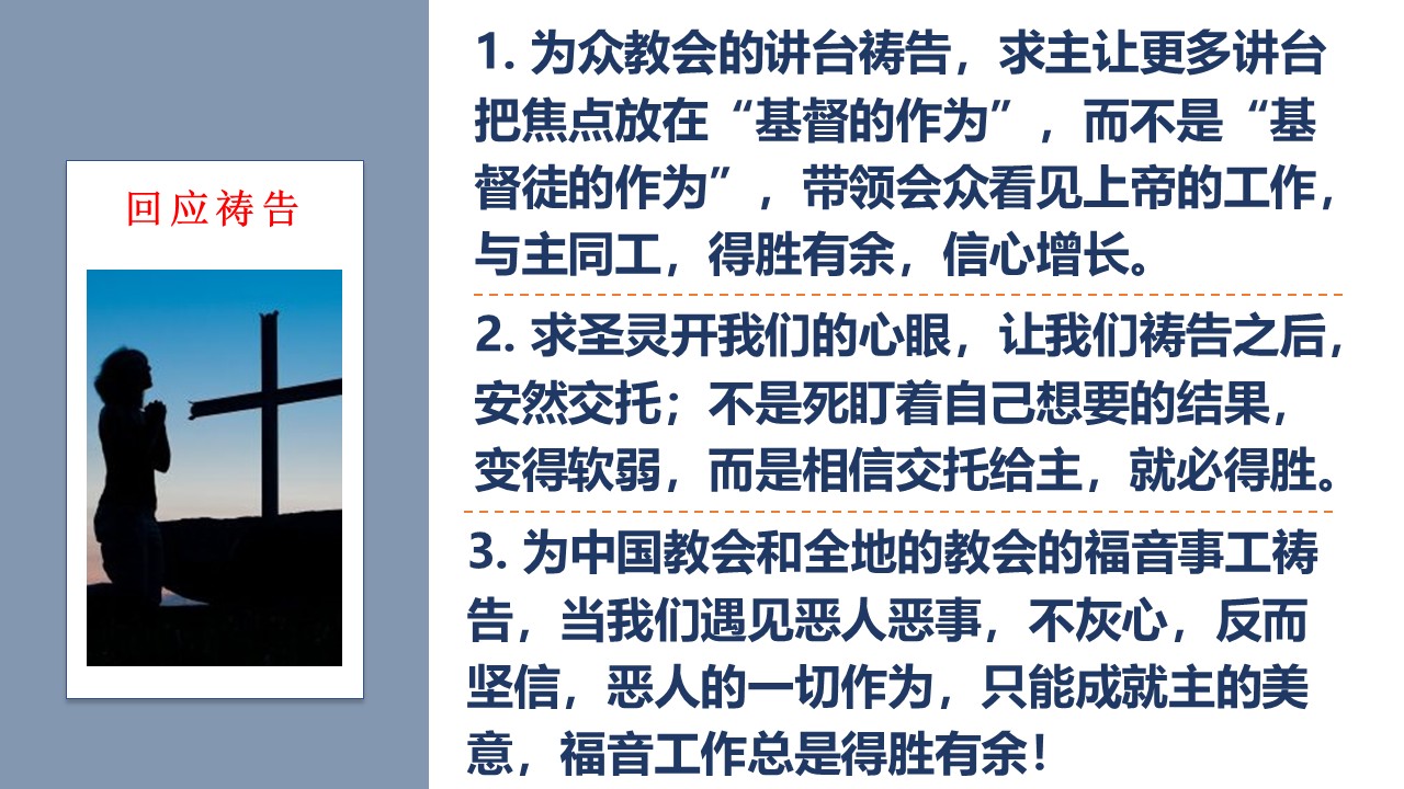 让我们更认识福音的大能,更注重与主同行、与神相交的生命建造,更勇敢为主作见证。