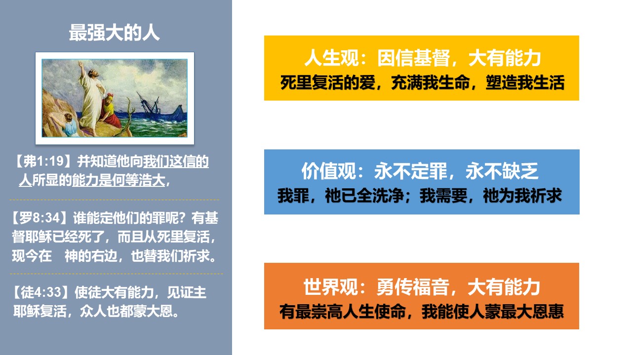 并因你的真理,信心更坚定,活在基督里,为基督而活,成为有福音使命感的门徒,坚定跟随主基督。