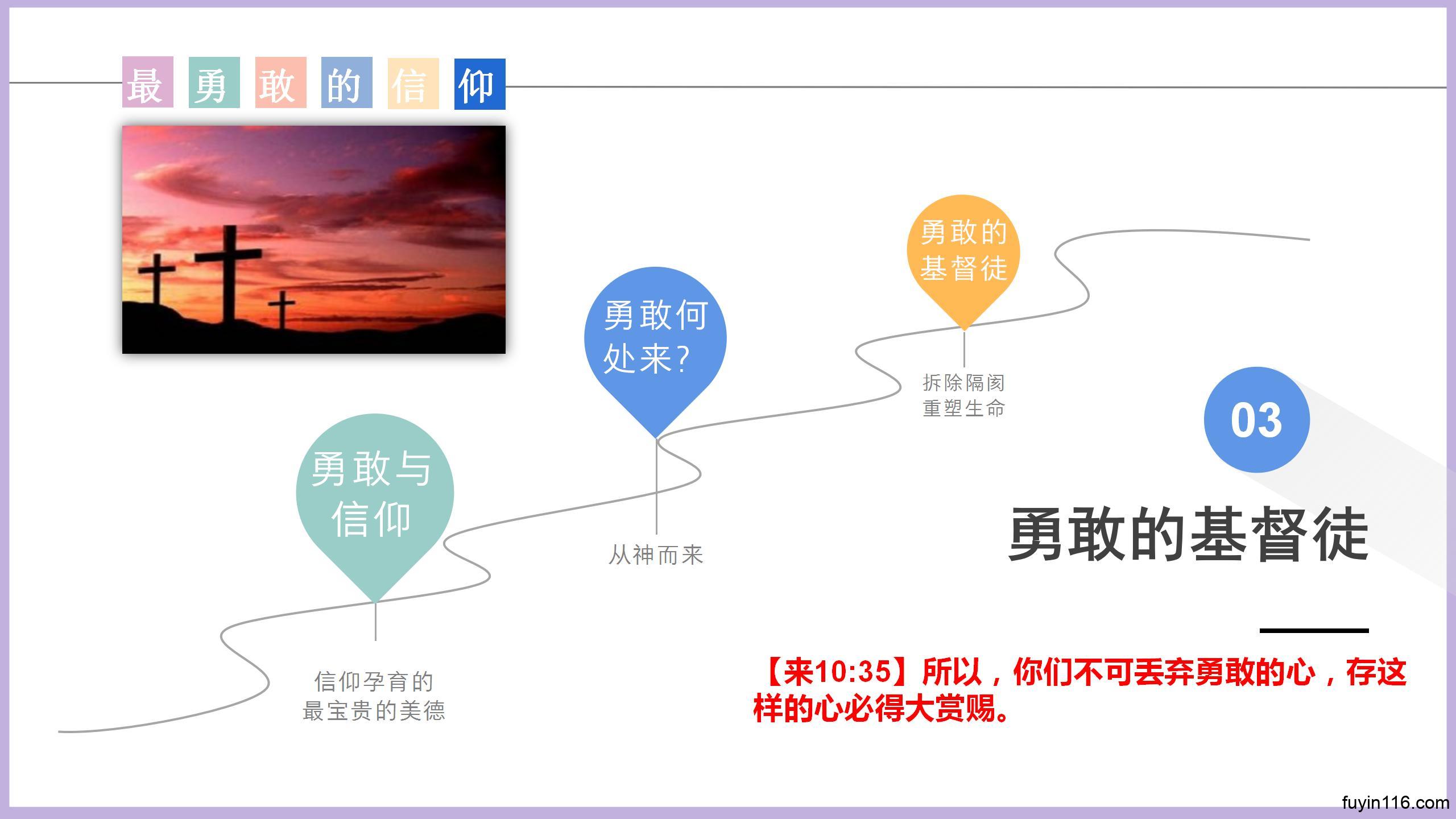 求主让我们更认识我们的信仰能带给我们的奇妙的、不断得胜的勇敢,更珍惜我们的信仰,也更有勇气用信仰面对各种挑战,并且得胜。