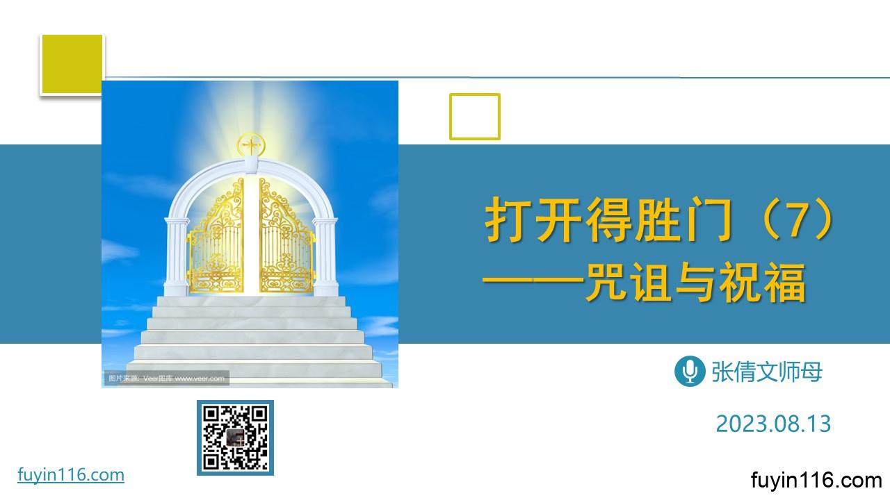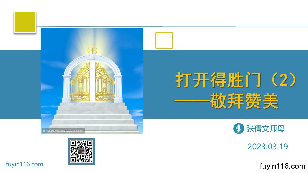 在2月19日,我们有一次特别的主题分享: 《打开得胜门》 “得胜门”是什么意思? 上帝给非拉铁非教会的应许,对我们有何重要的启发? 我们怎样才能打开得胜门? 欢迎您跟着我们的文章的提示,收听我们的录音录像,愿上帝的祝福借着祂的真道,更多地临到每一个认真聆听的灵魂。 您也可以点击下面的链接,重温之前的信息: 《争战得地》系列 点击音频媒体前面的小三角“►”就可以播放 点击下面链接,观看讲道视频(因存储空间有限,zoom视频共享时间为1个月左右) 《打开得胜门》讲道视频 密码: fuyin1…