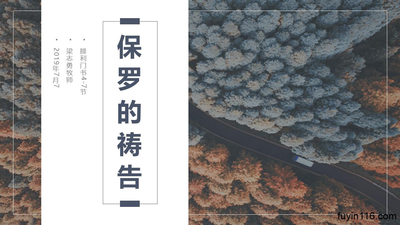 《腓利门书》是保罗书信中最短的一封书信,但这绝不是一封可以忽略的书信。 上帝把这封书信放在宝贵的《圣经》中,有着丰盛的美意。 让我们一起来通过六次讲道,来挖掘这封书信里的真理宝藏,让我们的灵魂得到造就。 点击音频媒体前面的小三角“►”就可以播放 了。 墙外观看: 我们的阿爸天父,感谢赞美你 感谢你赐给我们《圣经》真理,让我们可以领受你恩典和真理的祝福。 我们特别感谢你,赐给我们主基督;若没有主基督,我们所做的一切都毫无价值。 但有了主基督,我们就可以明白至圣的天国真道。 求你赐福我们所讲的《腓利门书》…