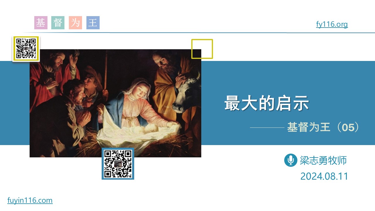 东方博士找到婴孩耶稣,是因“上帝的启示”。 什么是“上帝的启示”,为什么我们会误解上帝的启示? 为什么说基督就是“最大的启示”,对我们意味着什么? 主基督给今天的我们,怎样的启示,我们该怎样领受这些启示? 愿上帝的祝福借着祂的真道,更多地临到每一个认真聆听的灵魂。 欢迎您收听: 《最大的启示》 https://fygrace.top/jt9g 您也可以点击下面的链接,重温之前的信息: 《基督为王》 ⚠️⚠️⚠️ 注意 ⚠️⚠️⚠️ 因为微信会有较严苛无理的屏…