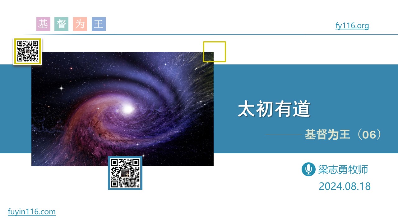 在伟大的《约翰福音》的开篇,就宣告“太初有道,道就是 神”。 “太初有道”这四个字,蕴含着怎样惊人丰富的真理? “道就是 神”又告诉我们,关于基督的哪些重要启示? “太初有道”和“现在的我”,有什么关系? 愿上帝的祝福借着祂的真道,更多地临到每一个认真聆听的灵魂。 欢迎您收听: 《太初有道》 https://fygrace.top/tzde 您也可以点击下面的链接,重温之前的信息: 《基督为王》 ⚠️⚠️⚠️ 注意 ⚠️⚠️⚠️ 因为微信会有较严苛无理的屏蔽…